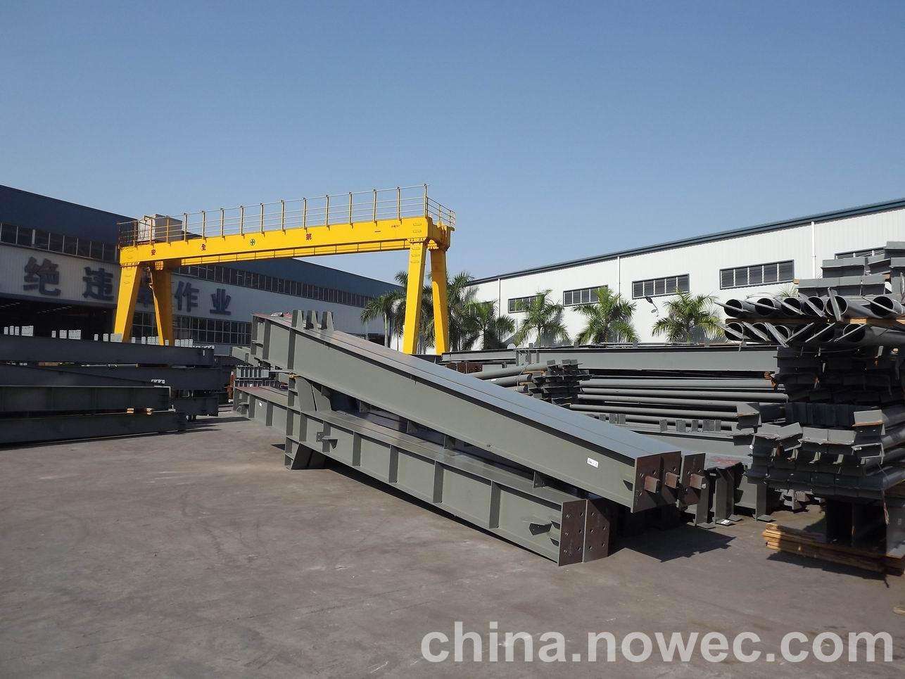 条状单元一般沿长跨方向分割,其宽度约为1~3个网格,其长度为l2或l2/2(l2为短跨跨距)。块状单元一般沿江门网架平面纵横向分割成矩形或正方形单元。每个单元的重量以现有起重机能胜任为准。条(块)与条(块)之间可以直接拼装,也可空一网格在高空拼装。由于条(块)状单元是在地面拼装,因而高空作业量较高空散装法大为减少,拼装支架也减少很多,又能充分利用现有起重设备,故较经济。这种安装方法适用于分割后网架的钢度和受力状况改变较小的各类中小型网架,如两向正交正放四角锥、正放抽空四角锥等网架。